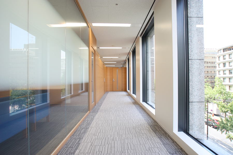 ナチュラルな木目をベースとする、広々とした応接エリア。